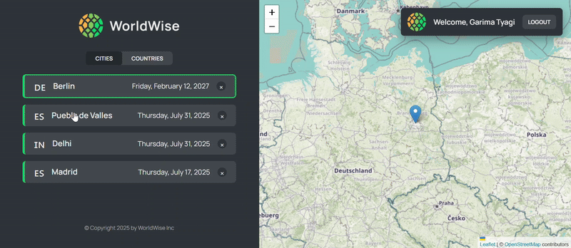 - Purpose: Personal itinerary manager to track places visited during a trip